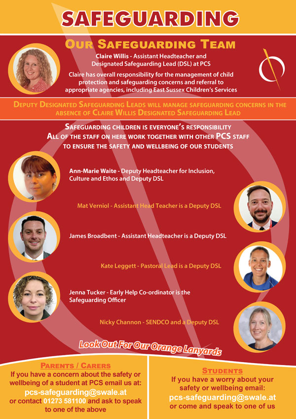 If you have a concern about the safety or wellbeing of a student at PCS, please email pcs-safeguarding@swale.at or contact 01273 581100 and ask to speak to one of the above